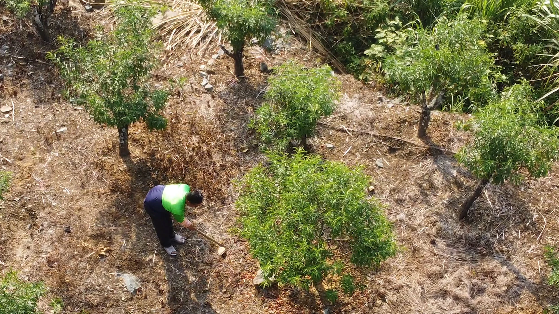 Ông Gia Văn Khua chăm sóc vườn mận.
