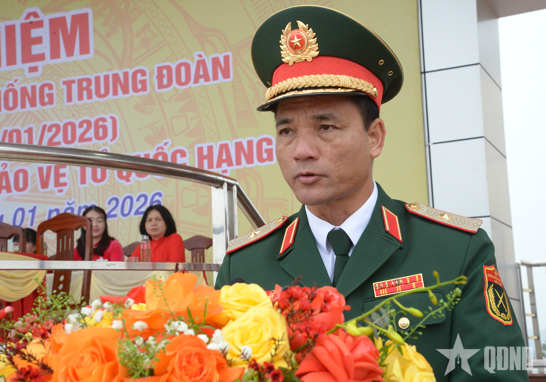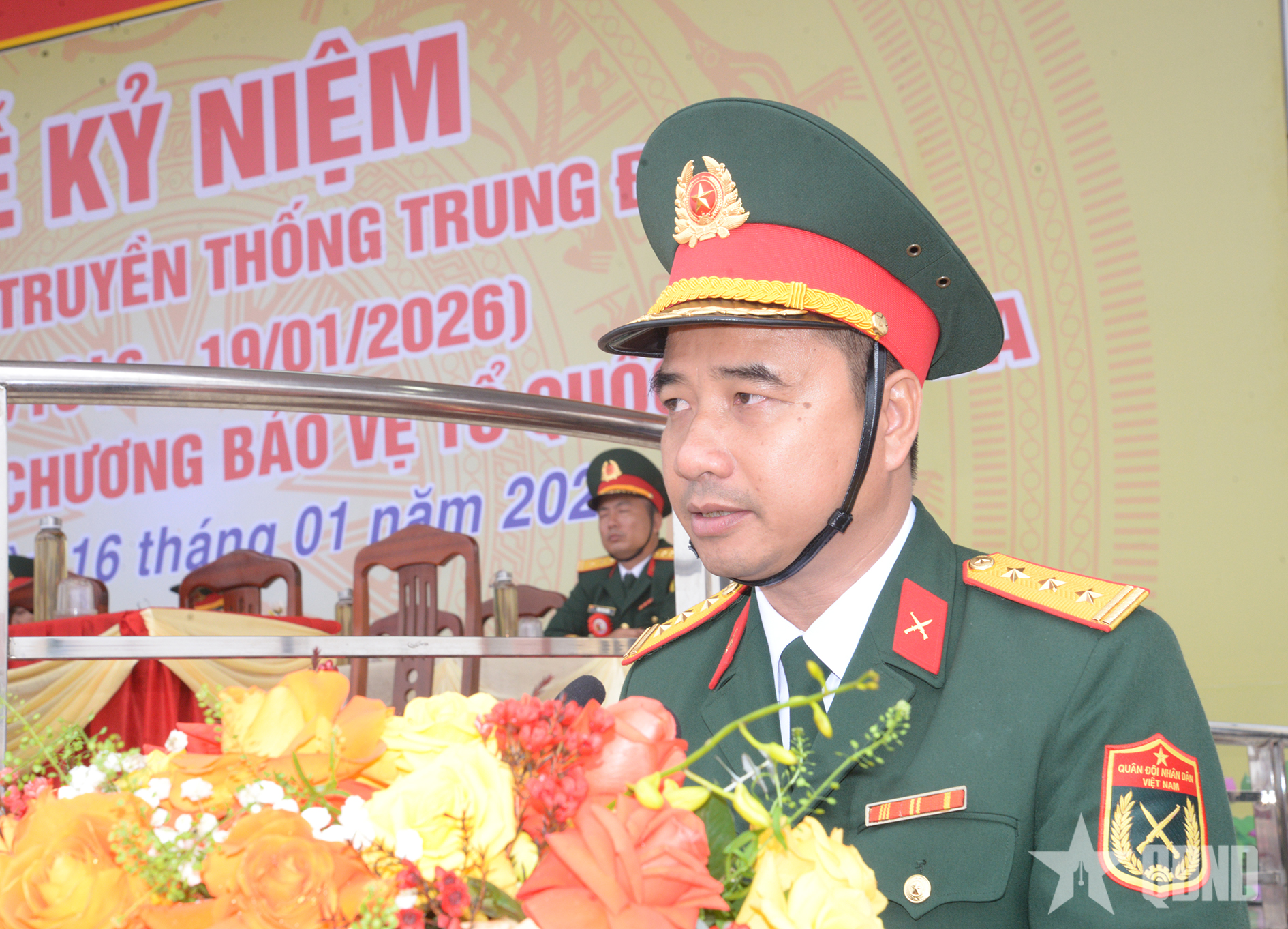 Thượng tá Hoàng Minh Đức, Trung đoàn trưởng Trung đoàn 165 trình bày diễn văn tại lễ kỷ niệm. Ảnh: KIM NGỌC