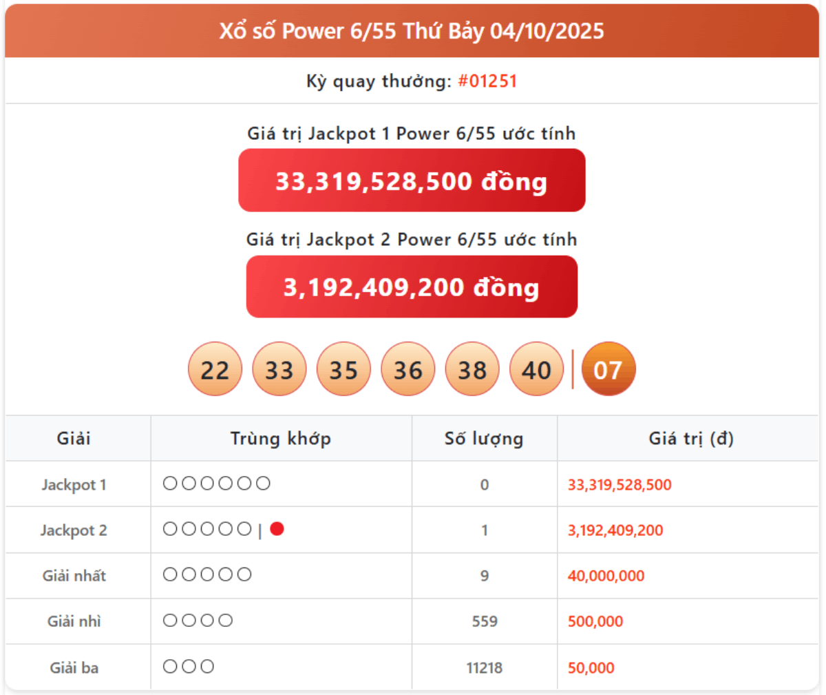 - Vietlott 4/10, kết quả xổ số Power 6/55 hôm nay 4/10/2025
