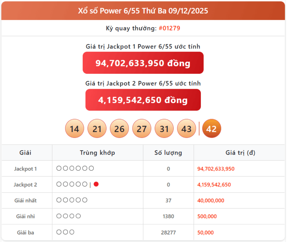 Vietlott 9/12, kết quả xổ số Power 6/55 hôm nay 9/12/2025