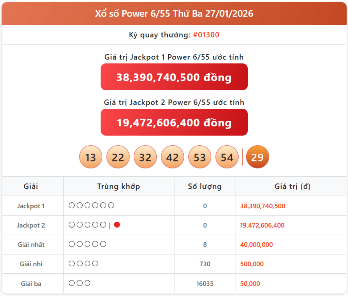 - Vietlott 27/1, kết quả xổ số Power 6/55 hôm nay 27/1/2026