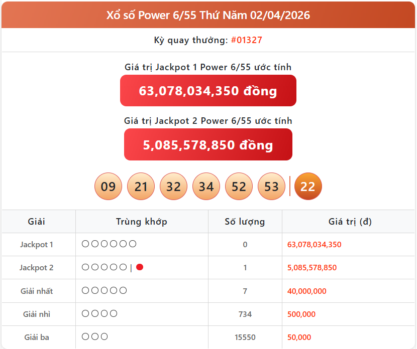 - Ngoài hai giải Jackpot, người chơi còn có thể nhận các giải khác như: trùng 5 số nhận 40 triệu đồng, trùng 4 số nhận 500.000 đồng, và trùng 3 số nhận 50.000 đồng.
