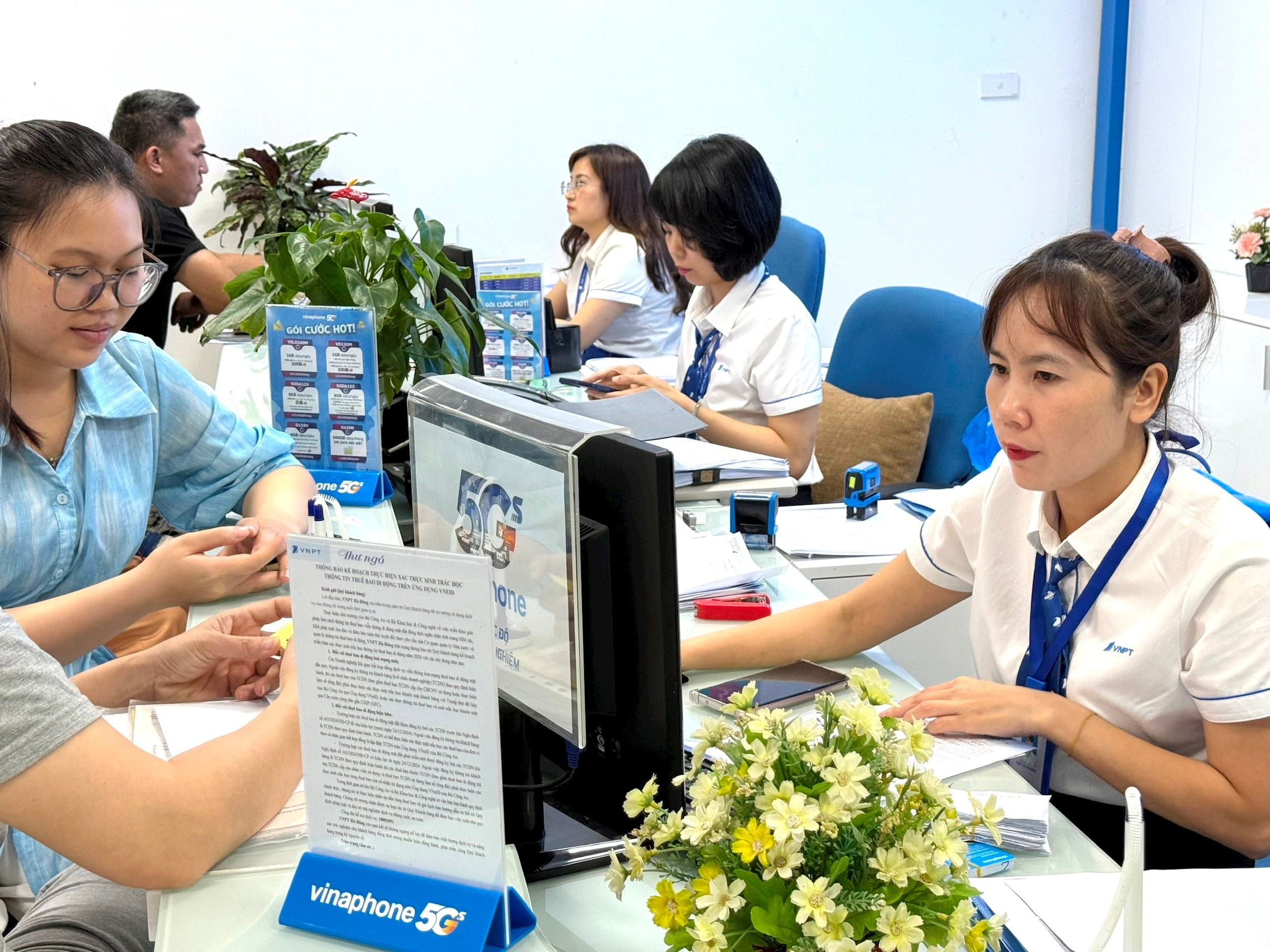 Các cửa hàng của nhà mạng hoạt động xuyên dịp nghỉ lễ, tiếp tục phục vụ khách hàng thực hiện xác thực thông tin thuê bao. Ảnh: Trần Yến
