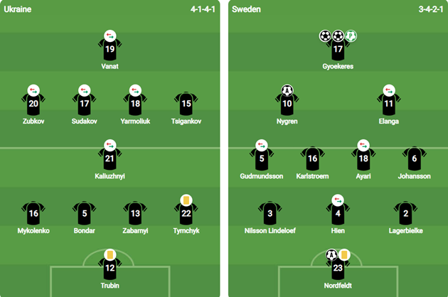 Ghi bàn: Ukraine: Matviy Ponomarenko (90') | Thụy Điển: Viktor Gyokeres (6', 51', 73')