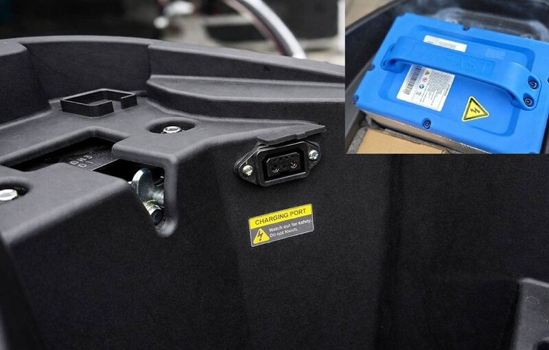 Ngoài đổi pin, khách hàng cũng có thể sạc pin tại nhà với cổng sạc đặt dưới cốp.