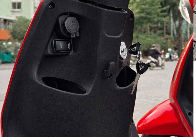 Xe sử dụng chìa khóa cơ, có hốc chứa đồ đầu xe kèm cổng sạc USB tiện dụng (Ảnh: Facebook).