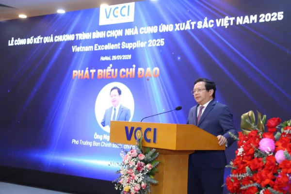 Chủ tịch Liên đoàn Thương mại và Công nghiệp Việt Nam (VCCI) Hồ Sỹ Hùng khẳng định, lễ công bố kết quả Chương trình bình chọn Nhà cung ứng xuất sắc Việt Nam năm 2025 không chỉ là dịp tôn vinh những doanh nghiệp tiêu biểu mà quan trọng hơn để cùng nhìn lại vị thế của doanh nghiệp Việt Nam trong chuỗi giá trị toàn cầu, từ đó xác lập những định hướng cho giai đoạn phát triển tiếp theo.