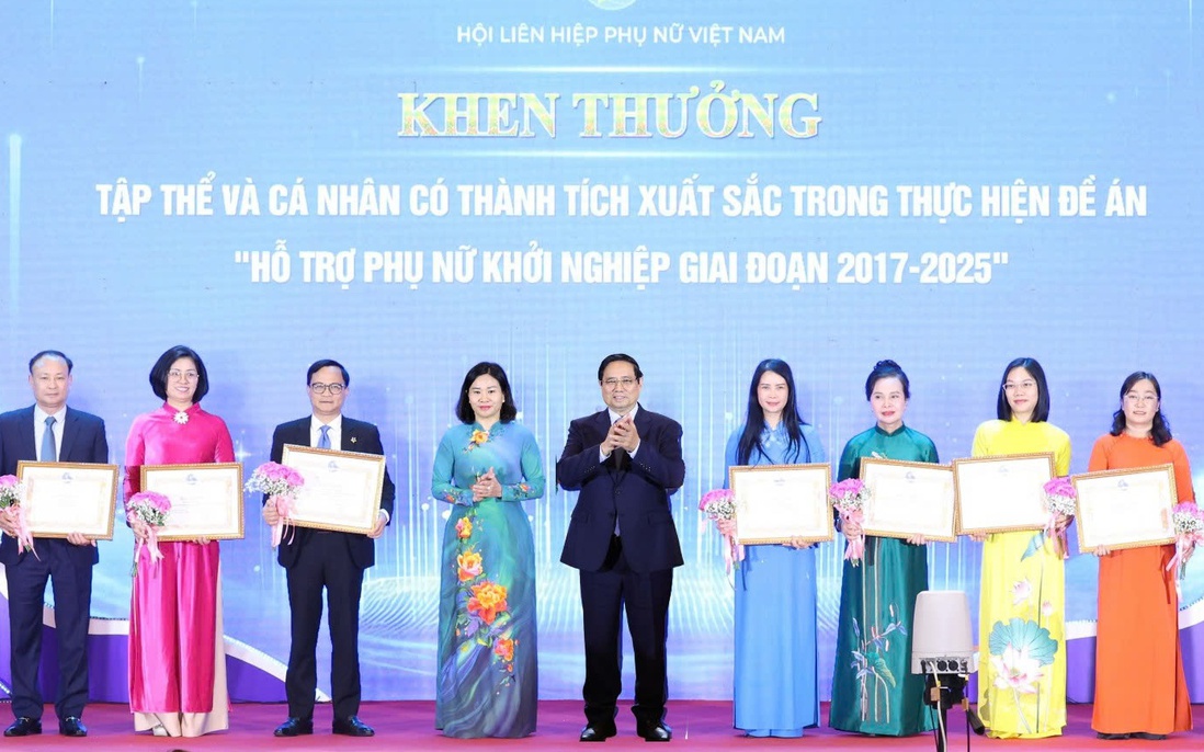 Ủy viên Bộ Chính trị, Thủ tướng Chính phủ Phạm Minh Chính và Ủy viên TƯ Đảng, Phó Chủ tịch UBTƯ MTTQ Việt Nam, Chủ tịch Hội LHPN Việt Nam Nguyễn Thị Tuyến trao Bằng khen cho các tập thể và cá nhân đã nỗ lực triển khai, thực hiện Đề án 939