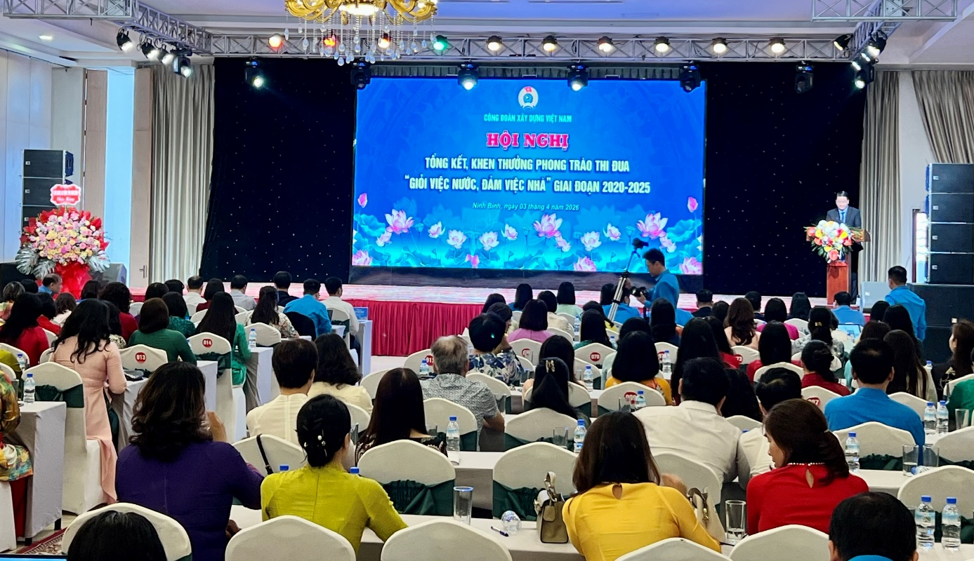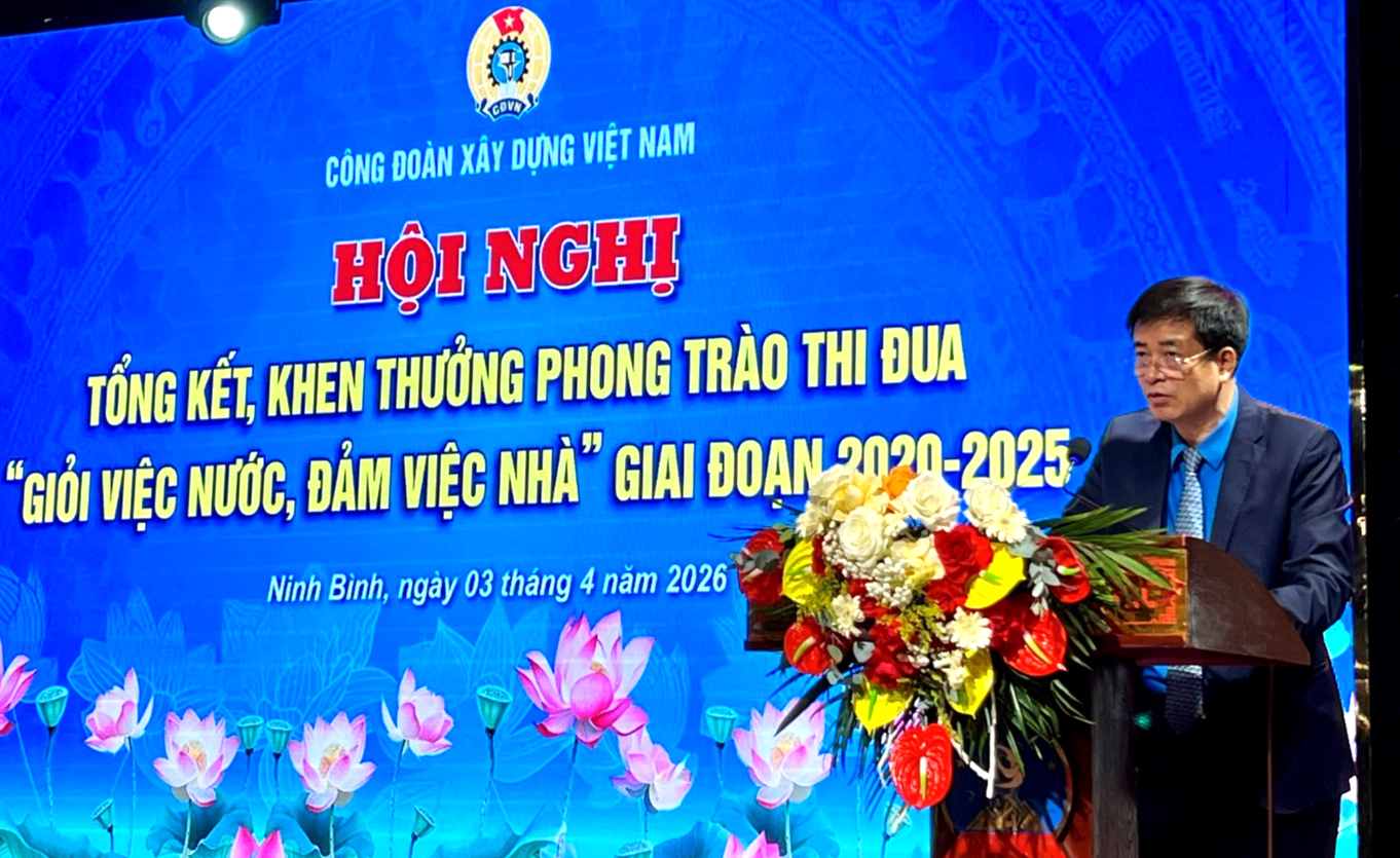 Sáng 3/4, tại tỉnh Ninh Bình, Công đoàn Xây dựng Việt Nam tổ chức hội nghị tổng kết 5 năm phong trào thi đua "Giỏi việc nước, đảm việc nhà" giai đoạn 2020 - 2025.