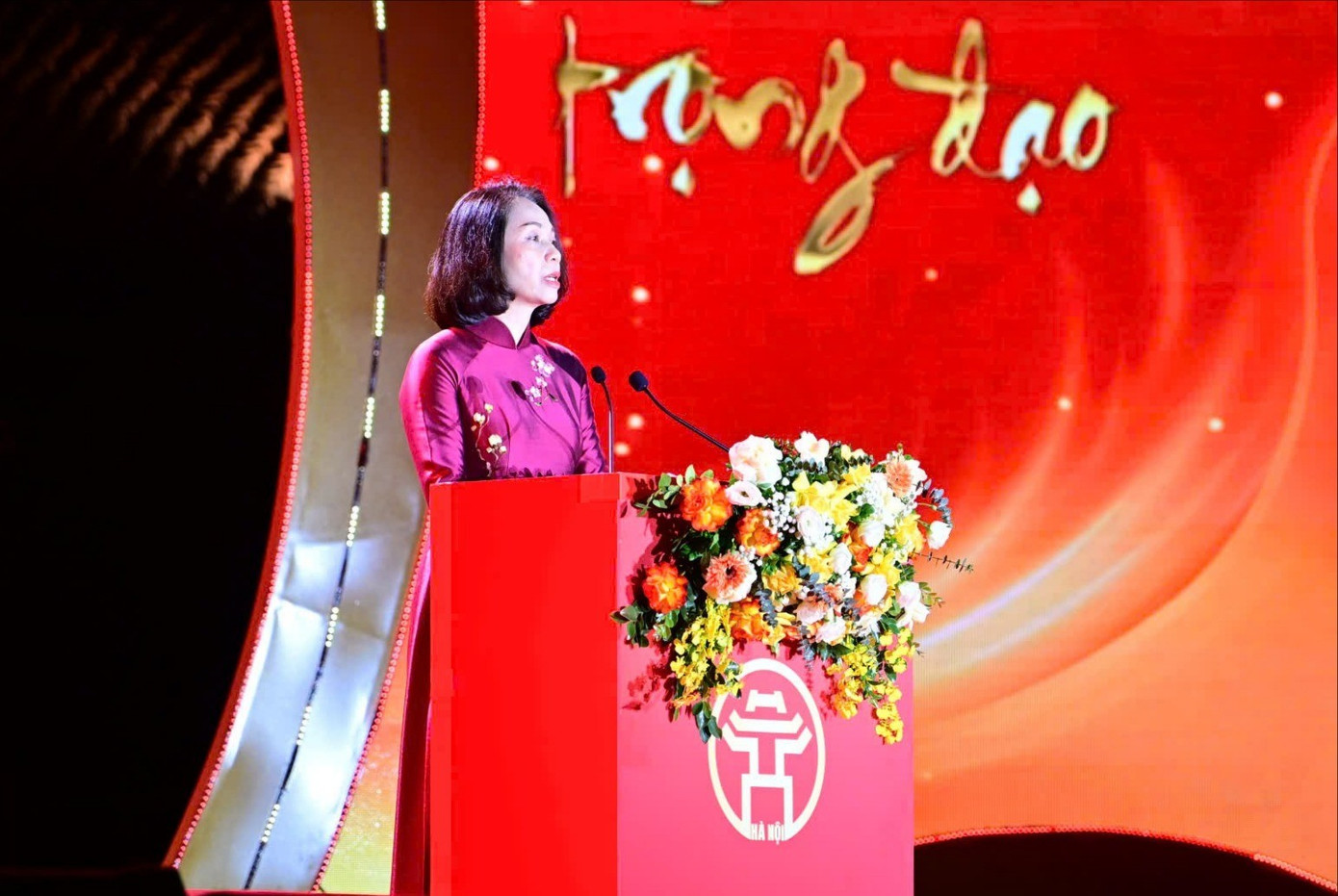 Bà Vũ Thu Hà - Phó Chủ tịch UBND TP Hà Nội phát biểu tại Lễ tuyên dương.