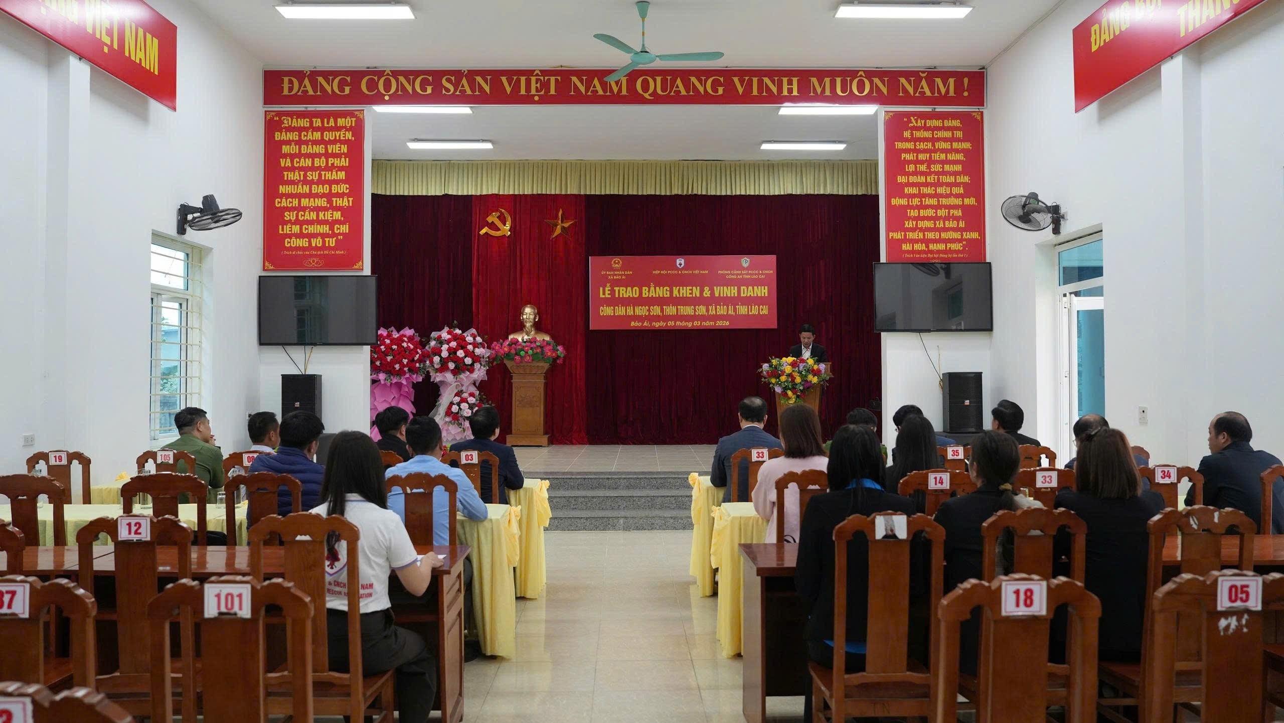 Phát biểu tại buổi lễ, Chủ tịch Hiệp hội PCCC và CNCH Việt Nam Nguyễn Đỗ Tùng Cương đã tuyên dương hành động dũng cảm của công dân Hà Ngọc Sơn. Khi xảy ra sự cố va chạm giữa các phương tiện giao thông đường thủy trên hồ Thác Bà, ông Hà Ngọc Sơn đã không quản ngại hiểm nguy, kịp thời tham gia ứng cứu và trực tiếp đưa 6 người bị nạn vào bờ an toàn. Hành động quả cảm, nhanh trí và giàu tinh thần trách nhiệm của ông đã góp phần hạn chế thiệt hại về người, thể hiện rõ nét tinh thần tương thân tương ái và ý thức cộng đồng trong công tác cứu nạn, cứu hộ.
