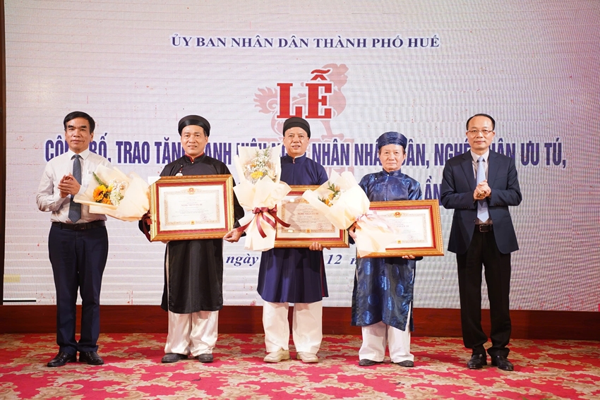 Tại buổi lễ, thừa ủy quyền của Chủ tịch nước, lãnh đạo thành phố Huế đã trao danh hiệu NNND cho 1 cá nhân và NNƯT cho 3 cá nhân trong lĩnh vực nghề thủ công mỹ nghệ. Bên cạnh đó, thành phố cũng phong tặng danh hiệu nghệ nhân Huế cho 11 cá nhân hoạt động trong nhiều lĩnh vực nghề truyền thống như điêu khắc gỗ mỹ nghệ, mây tre đan, may áo dài Huế, khảm sành sứ…