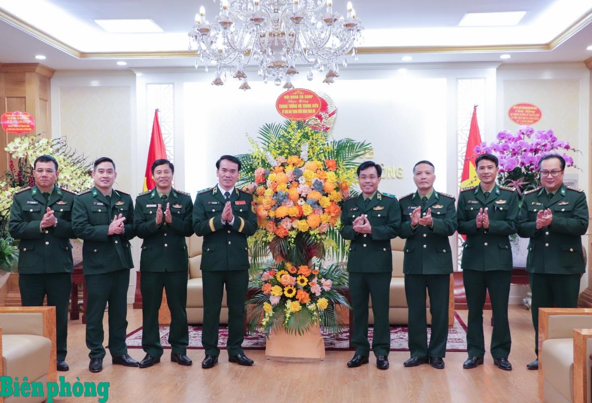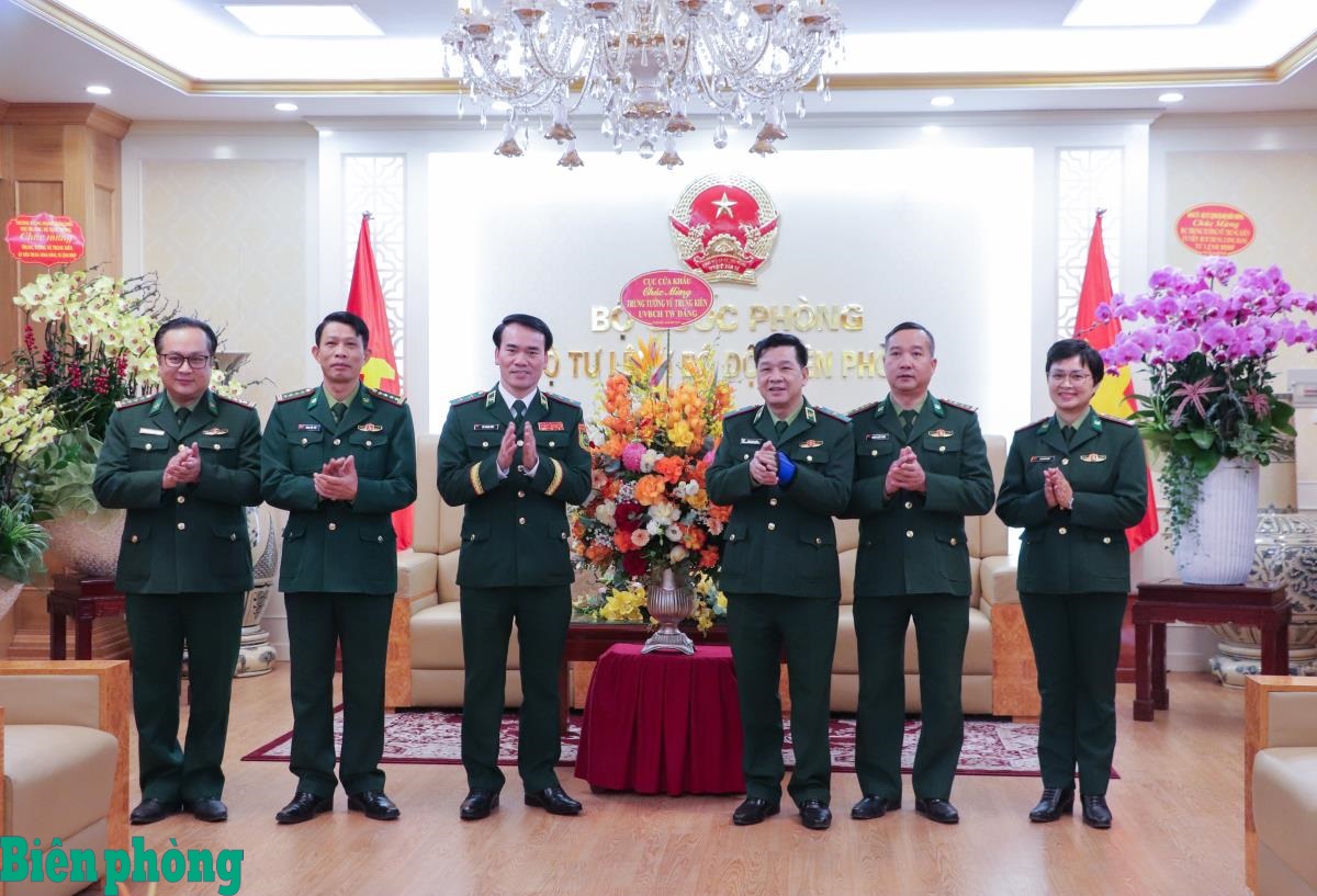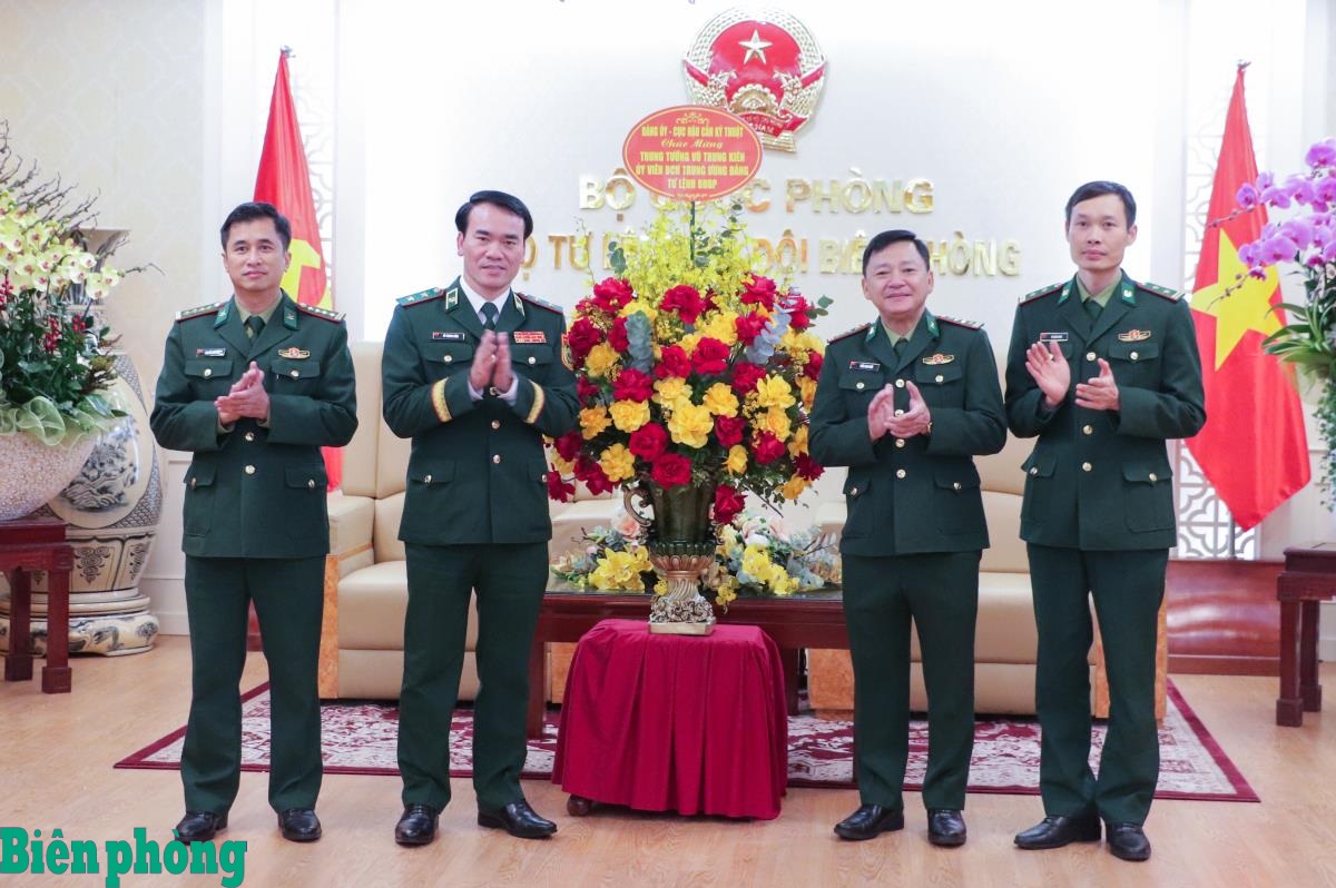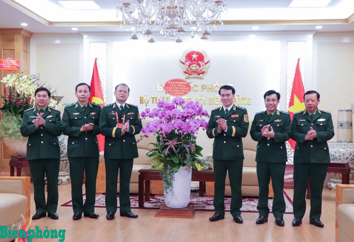 Thủ trưởng, đại diện các phòng thuộc Cục Cửa khẩu Bộ đội Biên phòng chúc mừng Trung tướng Vũ Trung Kiên. Ảnh: Thanh Xuân