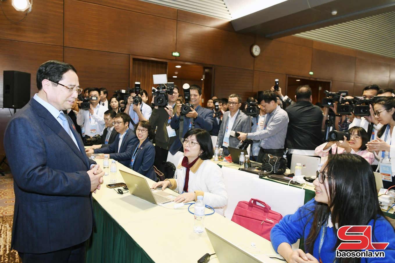 Thủ tướng Chính phủ Phạm Minh Chính thăm, động viên phóng viên tại Trung tâm Báo chí.