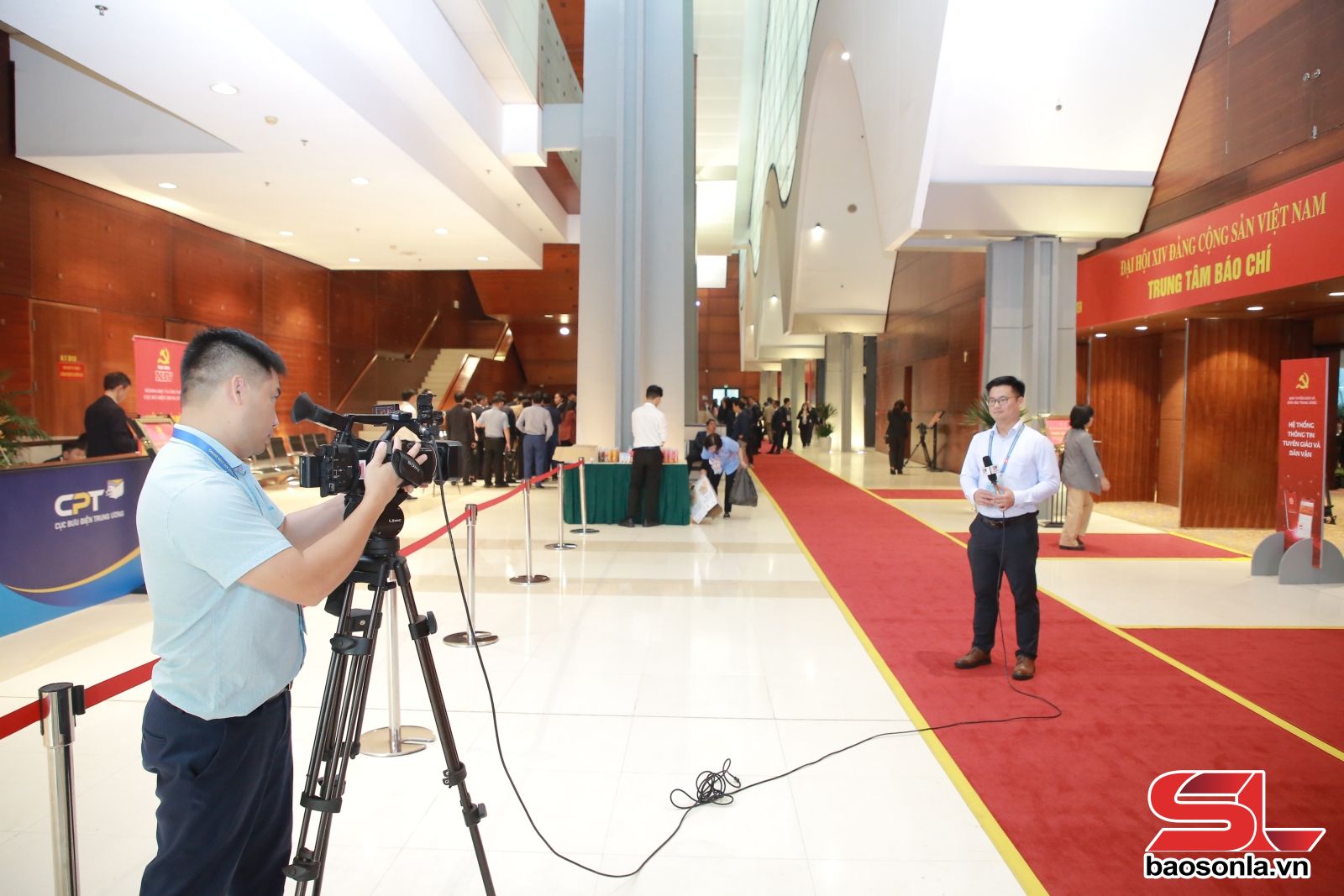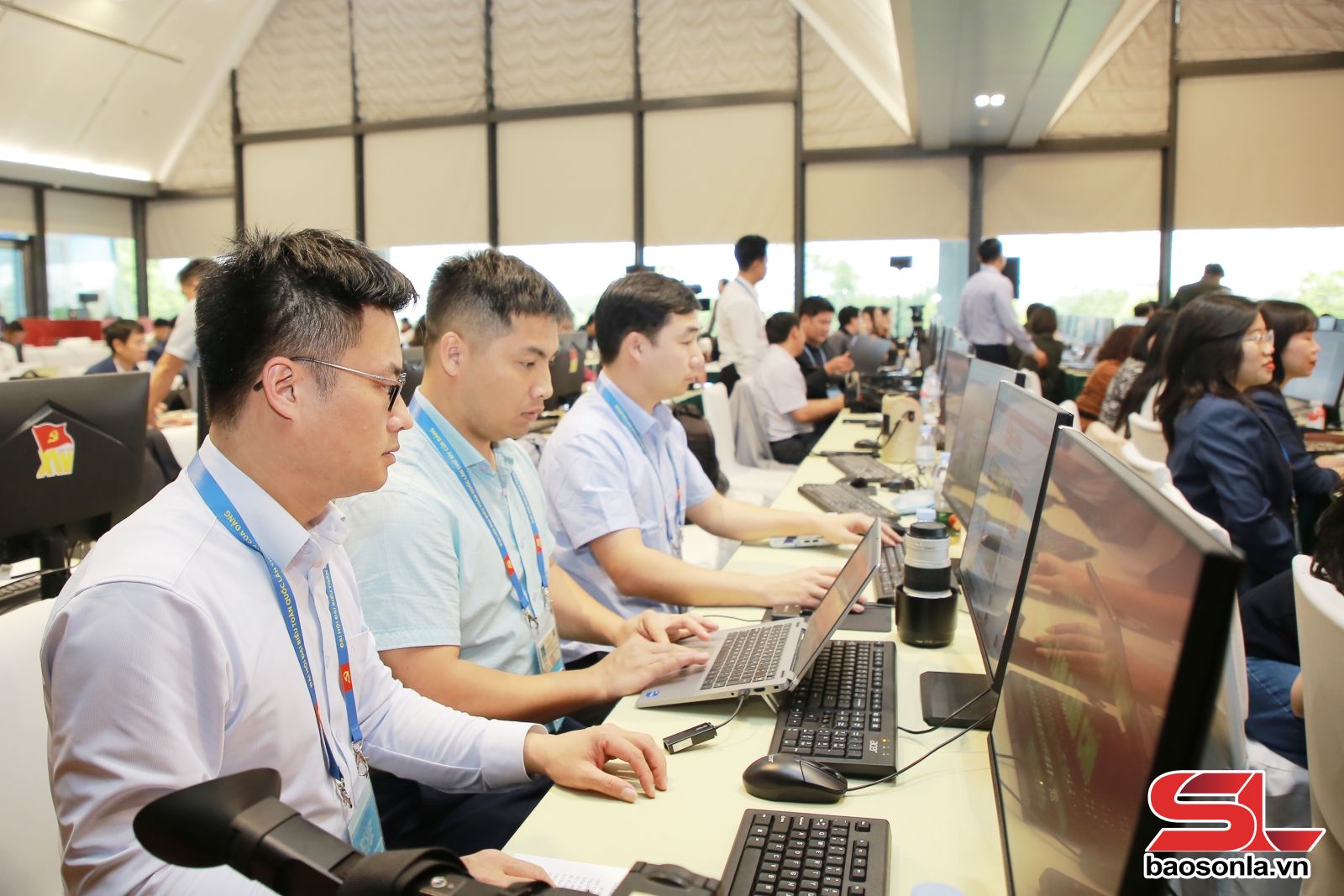 Phóng viên Báo và Phát thanh, Truyền hình Sơn La có mặt từ sáng sớm để tác nghiệp tại Trung tâm Báo chí.