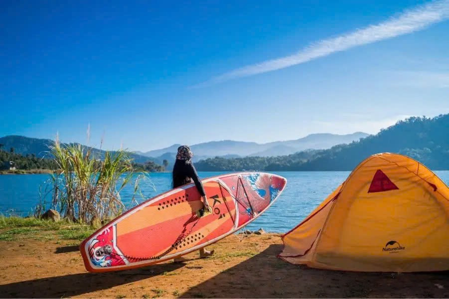 Một trải nghiệm khác được nhiều du khách yêu thích là cắm trại qua đêm bên bờ hồ. Khi màn đêm buông xuống, ánh lửa bập bùng soi rõ những gương mặt quây quần bên nhau, ly cà phê Lâm Đồng nóng hổi trên tay, phía xa là tiếng côn trùng rả rích và mùi gió rừng thoảng qua. Khoảnh khắc ấy khiến người ta cảm nhận rõ hơn nhịp sống chậm rãi, yên bình của vùng cao nguyên.