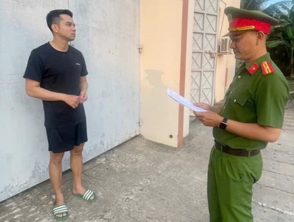 Cán bộ điều tra tống đạt lệnh bắt tạm giam bị can Đoàn Quang Thịnh.