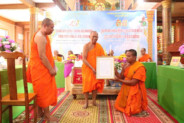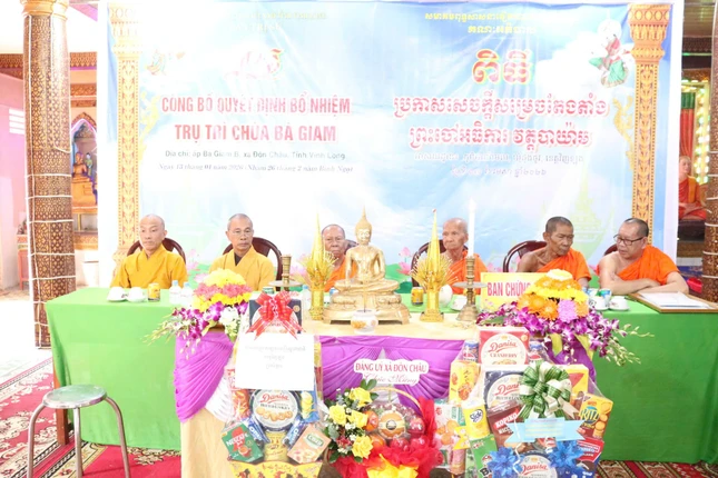 Sau phần nghi thức, Đại đức Thích Huệ Thắng, Phó Trưởng ban Trị sự kiêm Trưởng ban kiểm soát GHPGVN tỉnh và Thượng tọa Trương Hường, Phó Chủ tịch Hội Đoàn kết Sư sãi yêu nước tỉnh đã công bố các quyết định về việc bổ nhiệm Đại đức Chandasubho Thạch Ngọc (sinh năm 1987) giữ chức vụ trụ trì chùa Bà Giam.