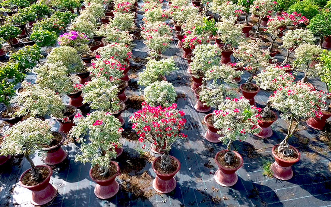 Đi dọc những con đường liên xã, về Vĩnh Thành hay Hưng Khánh Trung lúc này, hương xuân dường như đã len lỏi khắp nơi. Màu xanh non của lá đang dần nhường chỗ cho sắc hoa chớm nở. Hàng nghìn chậu kiểng được xếp đặt ngay ngắn, chờ ngày tỏa đi muôn phương.