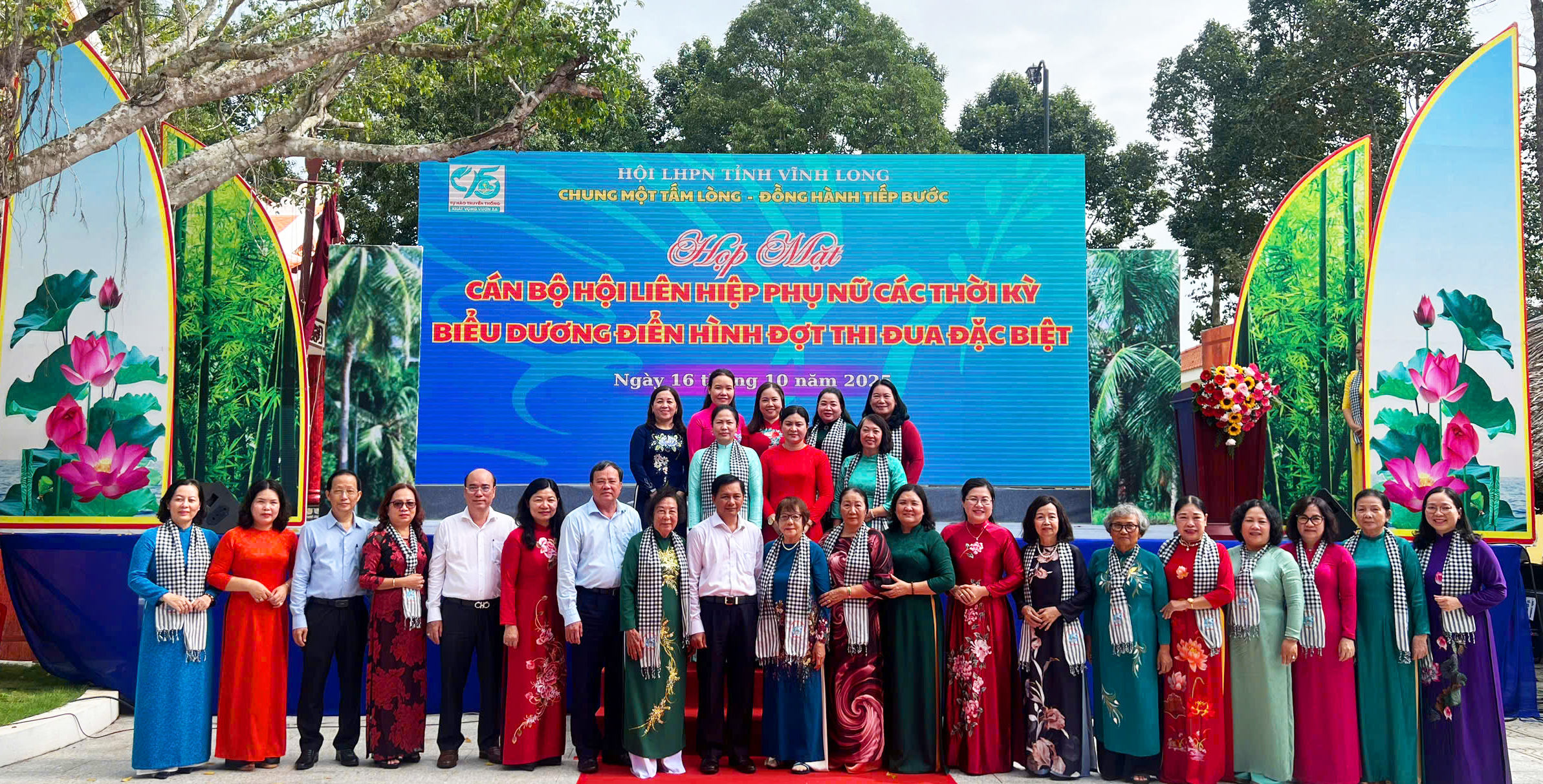 Tại buổi họp mặt, Hội Tương tế Bến Tre tại TPHCM và các đơn vị, cá nhân đã hỗ trợ 271 triệu đồng để sửa chữa tuyến đường vào nhà Nữ tướng Nguyễn Thị Định (xã Lương Hòa). Các đơn vị tài trợ cũng trao bảng tượng trưng đồng hành cùng Hội LHPN tỉnh Vĩnh Long trong công tác an sinh xã hội năm 2025, với tổng số tiền hơn 7,5 tỷ đồng.