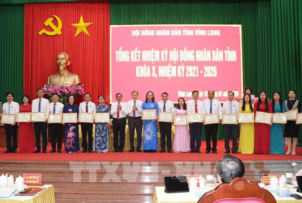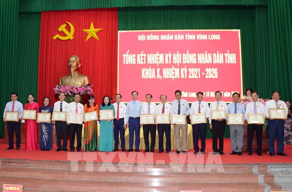 Dịp này, Chủ tịch UBND tỉnh Vĩnh Long tặng Bằng khen cho 20 tập thể và 40 cá nhân đã có thành tích xuất sắc, đóng góp cho sự thành công của HĐND tỉnh nhiệm kỳ 2021 - 2026.