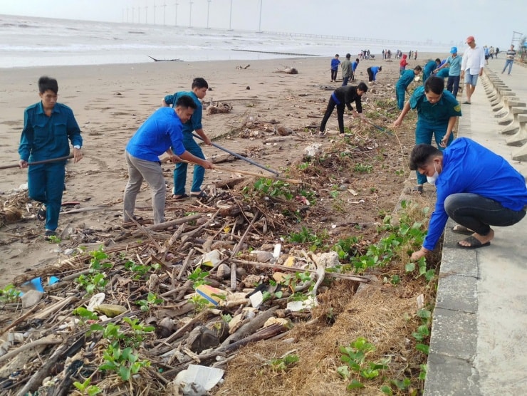 Bờ biển là khu vực bãi bồi, mùa gió chướng thường có rác trôi dạt vào bờ.