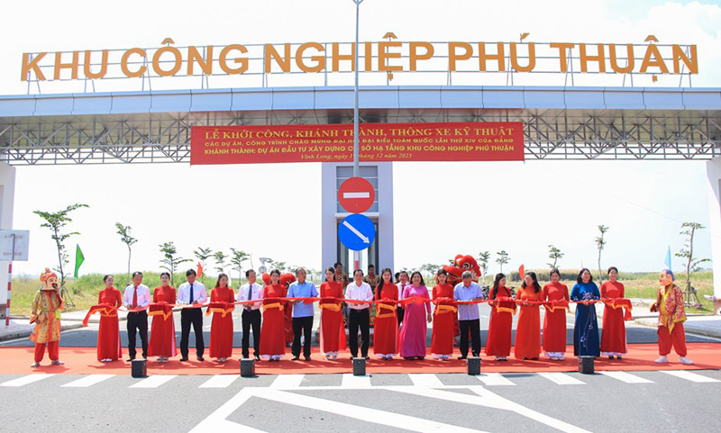 Sáng ngày 19/12, tại xã Phú Thuận, UBND tỉnh Vĩnh Long tổ chức lễ khánh thành Dự án đầu tư xây dựng cơ sở hạ tầng Khu công nghiệp Phú Thuận. Đây là 1 trong 3 công trình, dự án được tỉnh Vĩnh Long khởi công, khánh thành chào mừng Đại hội đại biểu toàn quốc lần thứ XIV của Đảng.
