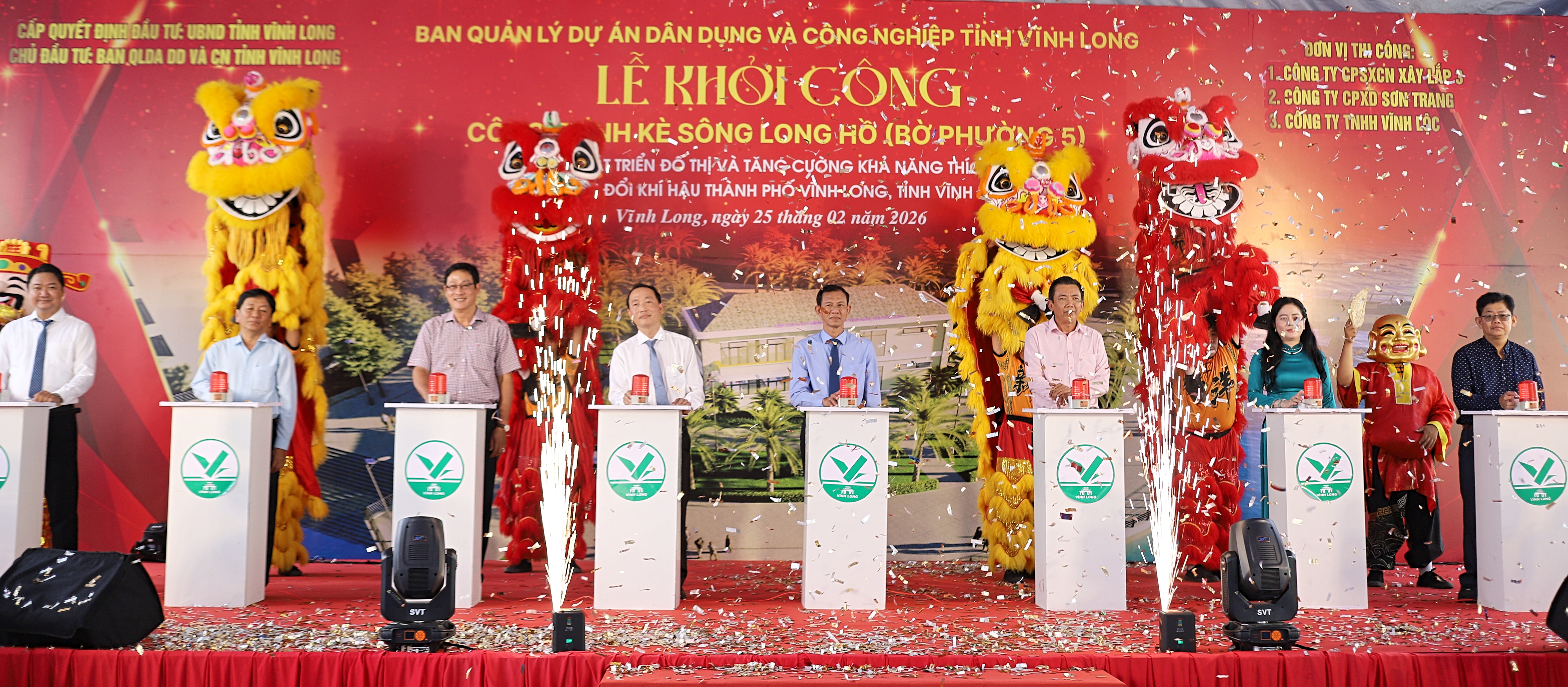 Tham dự lễ khởi công có ông Đặng Văn Chính, Phó Chủ tịch Thường trực UBND tỉnh Vĩnh Long, cùng lãnh đạo các sở, ngành tỉnh.