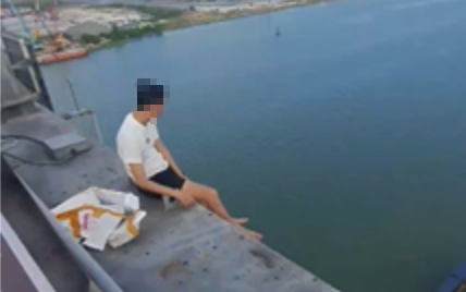 Nam thanh niên ngồi ở khu vực phía ngoài lan can cầu Cần Thơ có dấu hiệu bất thường.