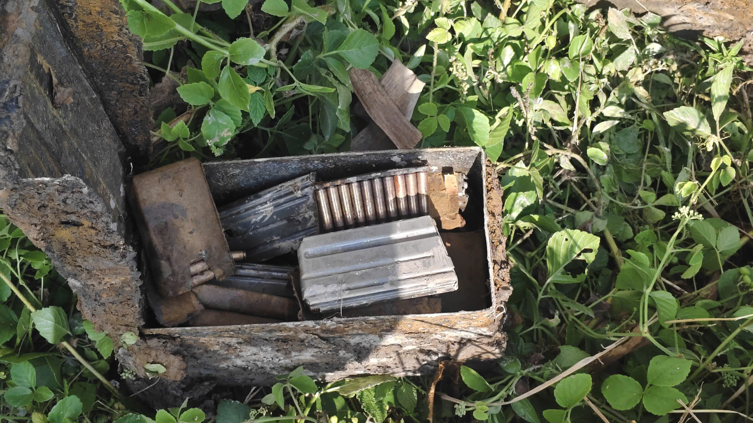 Qua kiểm tra, lực lượng chức năng ghi nhận có 2 thùng đựng đạn, bên trong chứa 6 hộp tiếp đạn AR15, hơn 600 viên đạn AR15 và 2 quả lựu đạn còn nguyên chốt, còn ngòi nổ.
