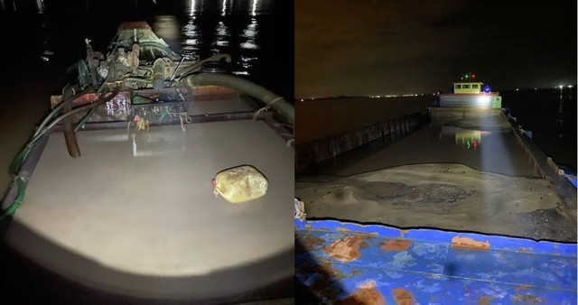 Khoảng 0h30, lực lượng chức năng phát hiện sà lan biển số TG-18666, do ông N.H.T (SN 1978, ngụ Đồng Tháp) quản lý, đang bơm bán 175 m³ cát sông cho người dân mà không có hóa đơn, chứng từ hợp pháp.