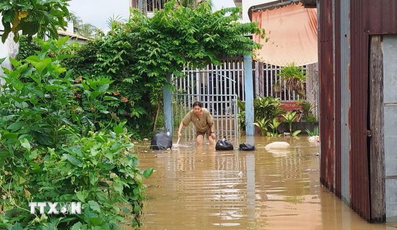 Triều cường dâng cao gây ngập nhiều nhà cửa ở Vĩnh Long. (Ảnh: Phúc Sơn/TTXVN)