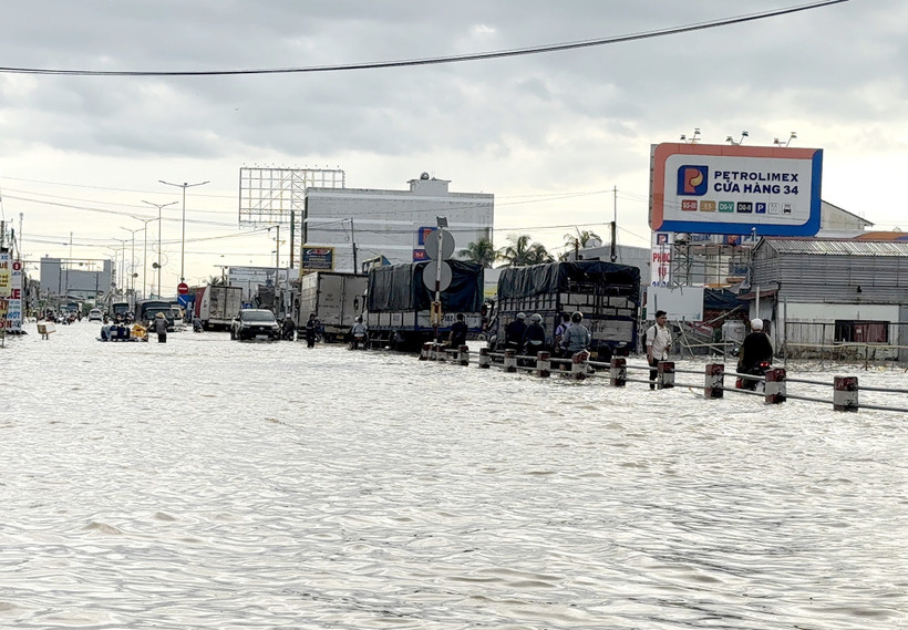 Theo ghi nhận, những đợt đỉnh triều, tuyến đường ngập sâu khiến việc đi lại gặp nhiều khó khăn. Nhiều phương tiện chết máy, giao thông bị ùn ứ.