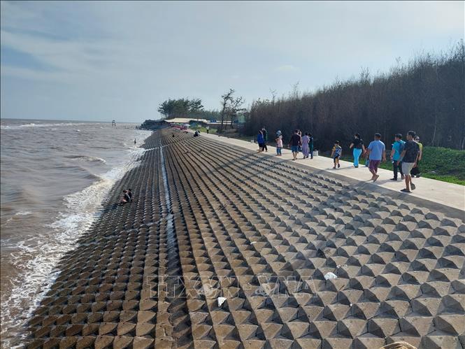 Các tuyến kè giảm sóng ở tỉnh Vĩnh Long được xây dựng với mục tiêu kép: vừa bảo vệ bờ biển khỏi nguy cơ xói lở, vừa tạo điều kiện để nâng cấp và phát triển du lịch biển. Ảnh: Chương Đài/TTXVN