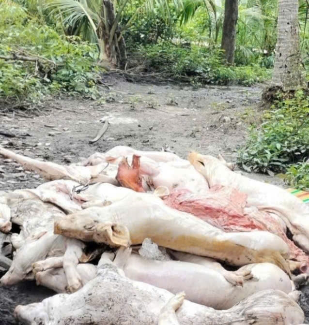 Lượng thịt heo tại các lò giết mổ tại xã Nhuận Phú Tân có mùi hôi thối nghi nhiễm bệnh