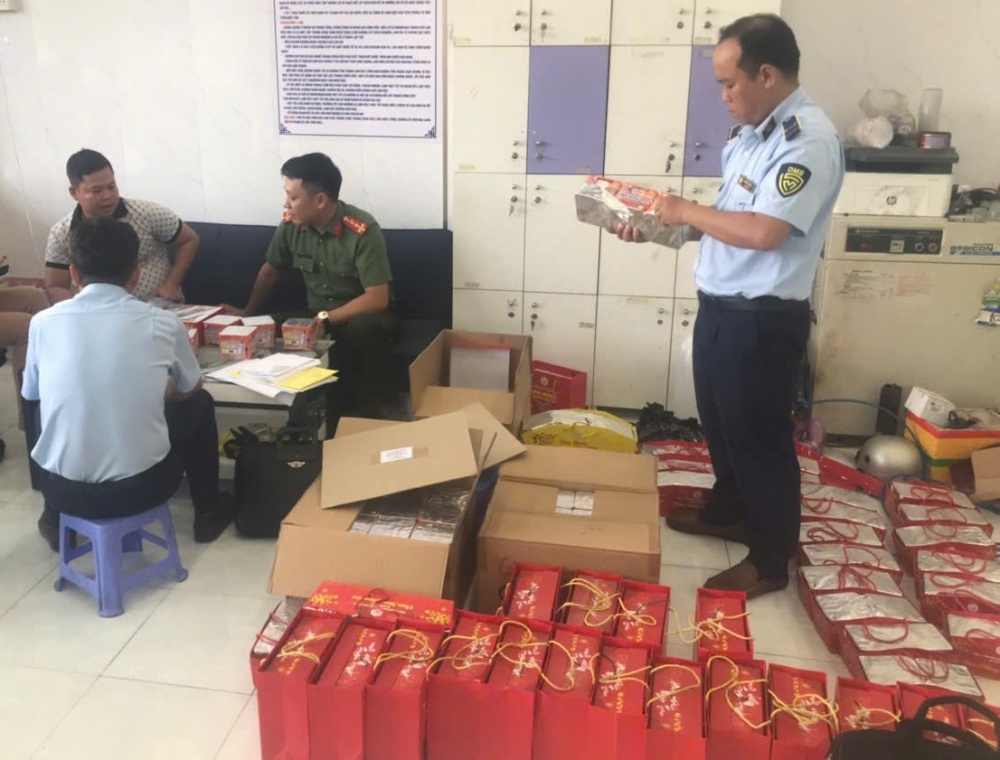 Kết quả kiểm tra cho thấy cơ sở đang bày bán 275 hộp pháo hoa phun viên (loại 25 ống/hộp), sản xuất bởi Công ty TNHH MTV Hóa chất 21. Chủ hộ kinh doanh xuất trình được hóa đơn, chứng từ liên quan đến hàng hóa, tuy nhiên không cung cấp được giấy chứng nhận đủ điều kiện về an ninh, trật tự và các điều kiện cần thiết đối với hoạt động kinh doanh pháo hoa theo quy định pháp luật.