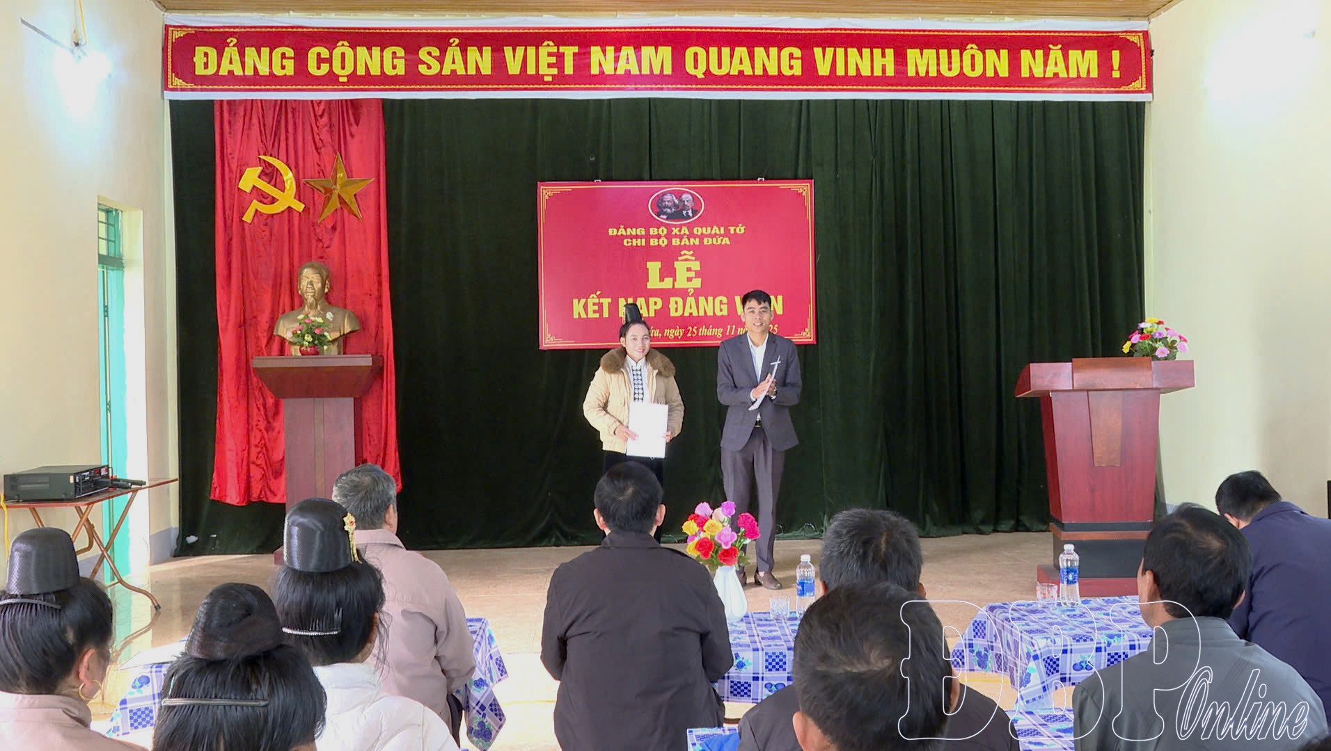 Ông Giàng A Dế, Bí thư Đảng ủy, Chủ tịch HĐND xã Quài Tở nhấn mạnh: Việc kết nạp đảng viên không chỉ là niềm vinh dự của cá nhân mà còn là minh chứng cho sự đổi mới trong công tác xây dựng Đảng ở cơ sở. Và khi được đứng trong hàng ngũ của Đảng, các đảng viên mới cần phát huy vai trò tiên phong, gương mẫu, nâng cao tinh thần trách nhiệm, cùng chi bộ đoàn kết, lãnh đạo nhân dân xây dựng nông thôn mới, nâng cao đời sống vật chất và tinh thần của nhân dân.
