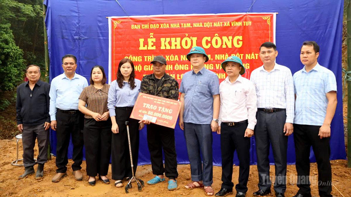 Xã Vĩnh Tuy trao hỗ trợ kinh phí xây dựng nhà ở cho hộ ông Hoàng Văn Hùng.