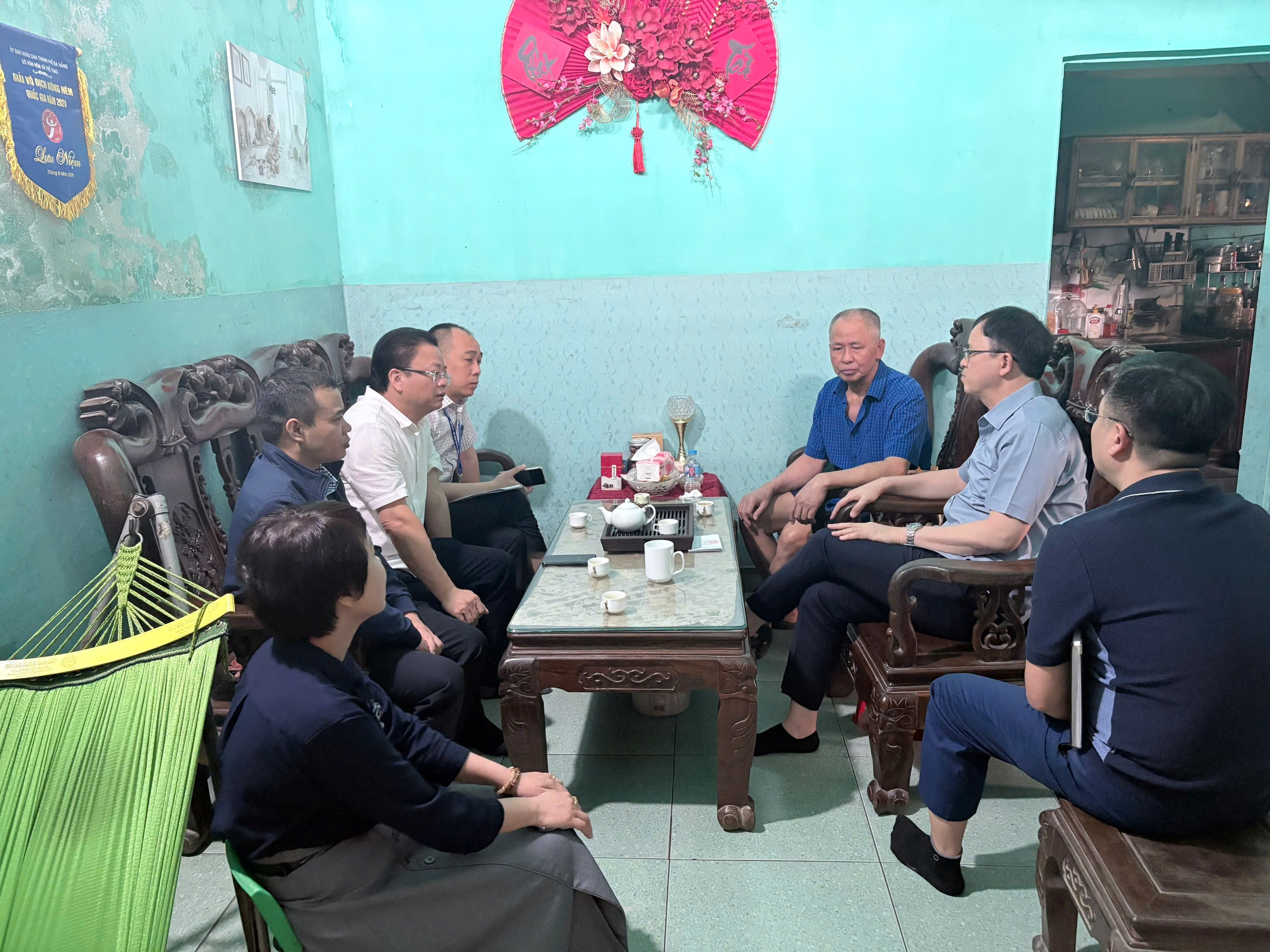 Lãnh đạo phường Vĩnh Tuy trực tiếp xuống từng hộ dân để vận động, tuyên truyền, tạo sự đồng thuận trong công tác giải phóng mặt bằng dự án giao thông trọng điểm. Ảnh: NT