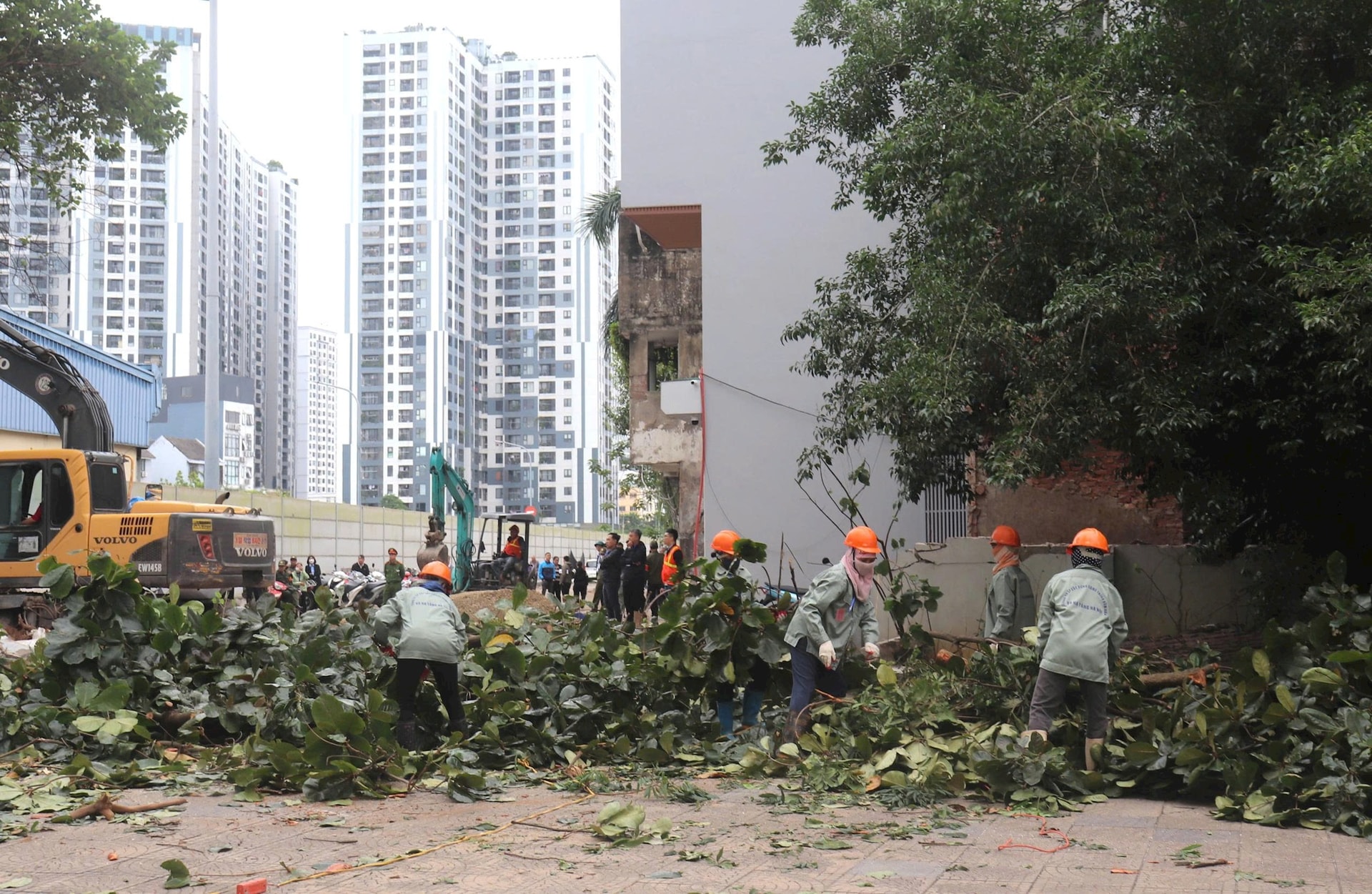 UBND phường Vĩnh Tuy phân công 3 tổ công tác thực hiện tháo dỡ, tiếp nhận bàn giao mặt bằng để thi công dự án. Ảnh: T. Linh