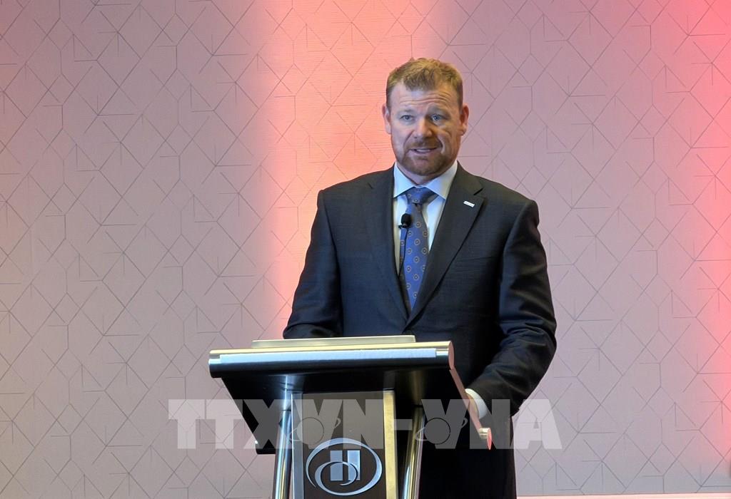 Ông Jeffrey Griffis, nhà sáng lập kiêm Tổng Giám đốc InLog, phát biểu khai mạc sự kiện. Ảnh: Ngọc Quang, PV TTXVN tại Mỹ
