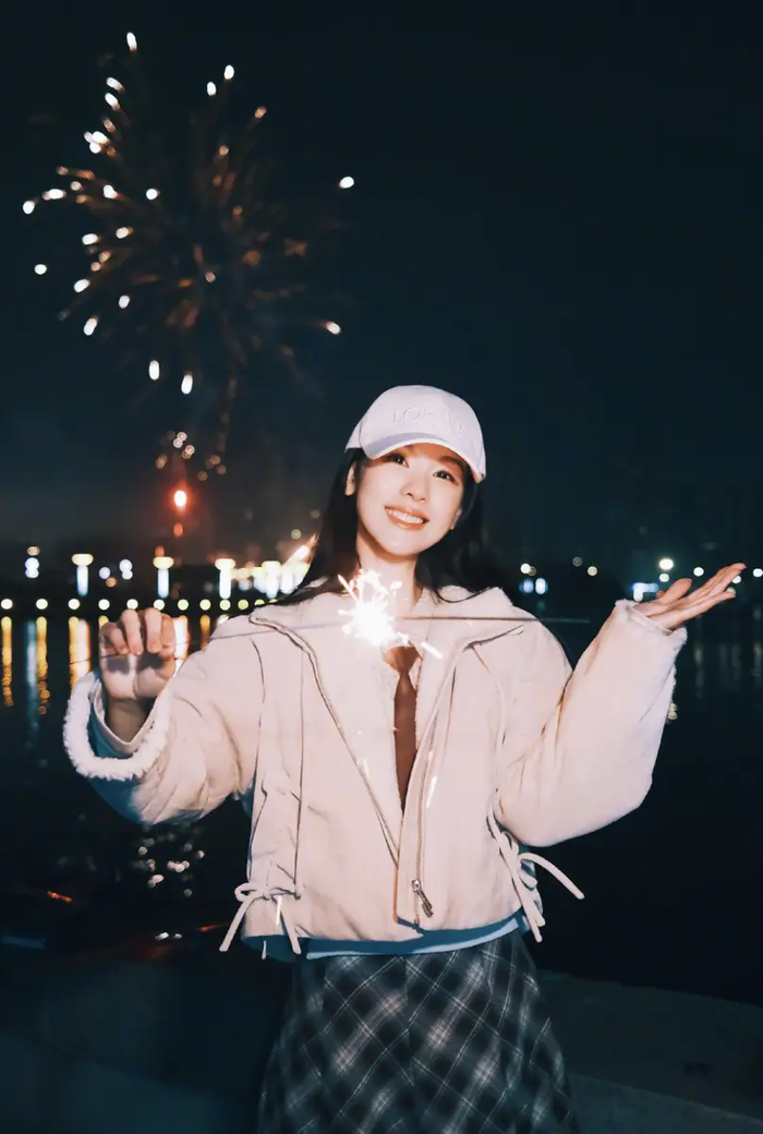 Bức ảnh của Trần Đô Linh giống như một thước phim thanh xuân dịu dàng, ghi lại trọn vẹn khoảnh khắc giao thừa đầy hy vọng. Giữa màn đêm lung linh bên bờ sông, nữ diễn viên hiện lên với vẻ đẹp trong trẻo, ngọt ngào trong bộ trang phục mùa đông ấm áp: chiếc áo khoác lông cừu màu be kết hợp cùng chân váy xếp ly caro và chiếc mũ lưỡi trai trắng năng động.Điểm nhấn rực rỡ nhất chính là nụ cười tỏa nắng của cô, hòa cùng ánh sáng lấp lánh từ cây pháo bông trên tay và màn pháo hoa đại đóa đang bung nở trên bầu trời. Ánh sáng vàng dịu từ pháo bông hắt lên gương mặt thanh tú, tạo nên một bầu không khí vừa huyền ảo, vừa tràn ngập sức sống tuổi trẻ. Tổng thể bức hình không chỉ tôn vinh nét đẹp "mối tình đầu" đặc trưng của Trần Đô Linh mà còn truyền tải một thông điệp tích cực, rạng rỡ về một khởi đầu mới đầy ắp niềm vui và sự lạc quan đầu năm mới.