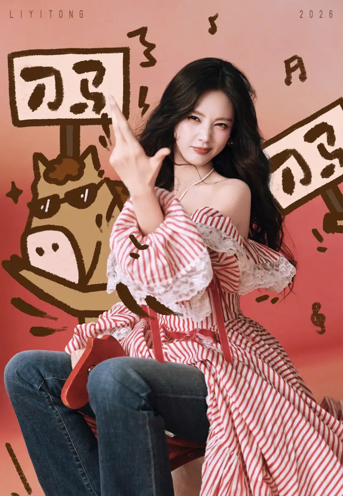 Không nằm ngoài đường đua nhan sắc đầu năm 2026, Lý Nhất Đồng cũng khiến cộng đồng mạng chao đảo với tạo hình đầy cuốn hút. Nữ diễn viên xuất hiện trong thiết kế trễ vai kẻ sọc đỏ trắng đan xen chất liệu ren điệu đà, khéo léo khoe trọn xương quai xanh quyến rũ và bờ vai thon thả. Khác với vẻ tĩnh lặng thường thấy, cô nàng mang đến một năng lượng tươi mới, vừa sang chảnh với mái tóc xoăn sóng bồng bềnh, vừa tinh nghịch với những biểu cảm lém lỉnh bên cạnh các họa tiết vẽ tay độc đáo. Sự kết hợp giữa nét cổ điển của trang phục và thần thái hiện đại đã giúp Lý Nhất Đồng khẳng định phong cách riêng biệt, không hề kém cạnh khi đặt bàn cân so sánh cùng các mỹ nhân khác.