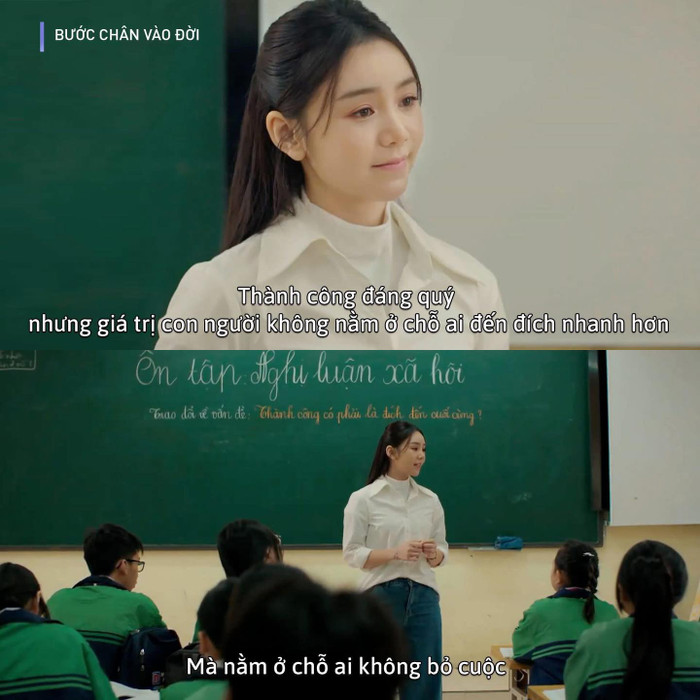 Tuy nhiên, khi bước lên màn ảnh trong Bước Chân Vào Đời, Quỳnh Kool lại mang đến hình ảnh hoàn toàn khác. Cô vào vai một cô giáo có hoàn cảnh khó khăn, đồng thời là người chị cả phải gồng gánh gia đình. Nhân vật này được xây dựng với cuộc sống nhiều thiếu thốn, buộc phải sớm trưởng thành và chấp nhận nhiều hy sinh.