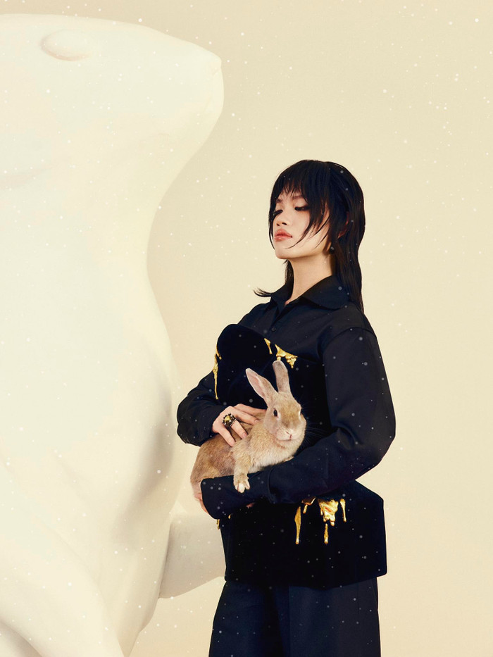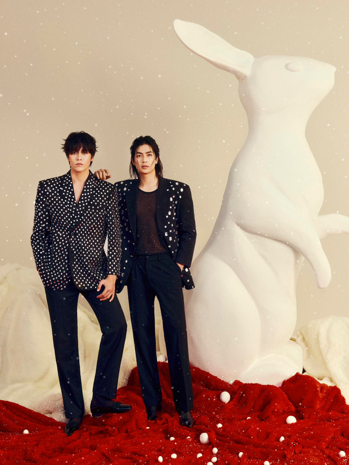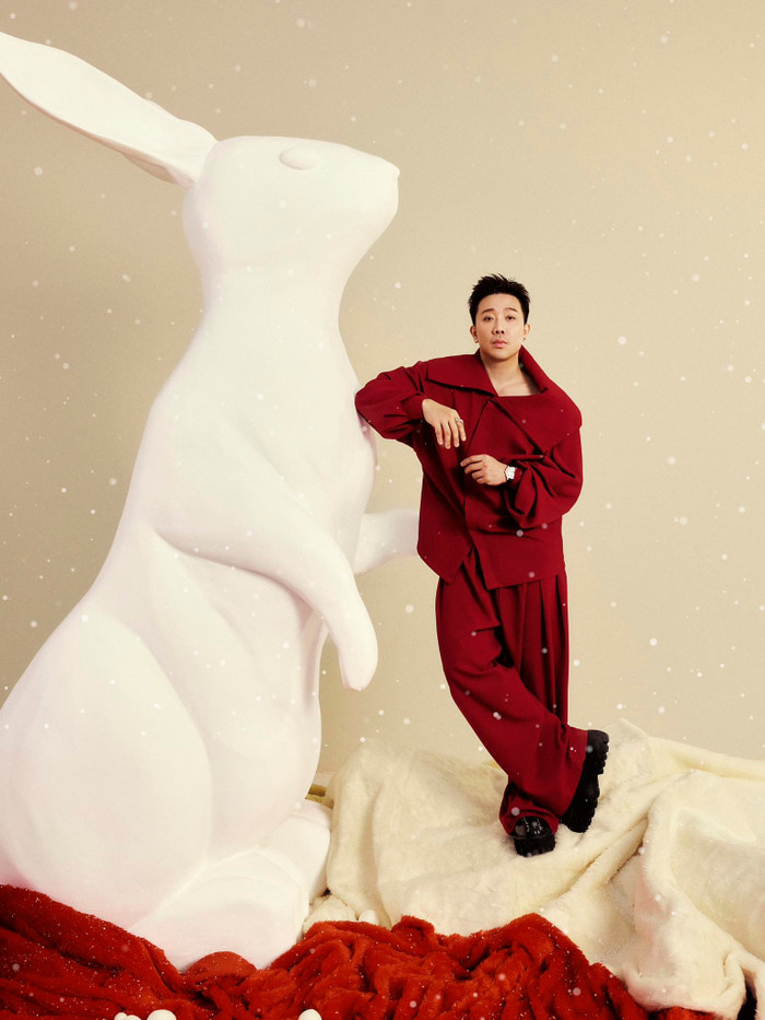 Bộ ảnh được thực hiện theo concept lễ hội rực rỡ, lấy tông đỏ - trắng làm chủ đạo, tạo cảm giác ấm áp, nổi bật trước thời khắc chuyển giao năm mới. Trên phông nền tối giản, tượng thỏ trắng khổng lồ trở thành điểm nhấn thị giác đầy ẩn ý, được xem là chi tiết liên tưởng trực tiếp đến dự án điện ảnh Thỏ Ơi!!. Hình tượng này không chỉ tăng thêm tính nhận diện cho phim mà còn góp phần tạo nên tổng thể sang trọng, hiện đại. Trong không gian ấy, dàn diễn viên xuất hiện lộng lẫy với loạt trang phục dạ tiệc cầu kỳ: đầm ánh kim bắt sáng, corset tôn dáng, váy cúp ngực quyến rũ, suit đính kết và những thiết kế lông vũ đầy nổi bật.