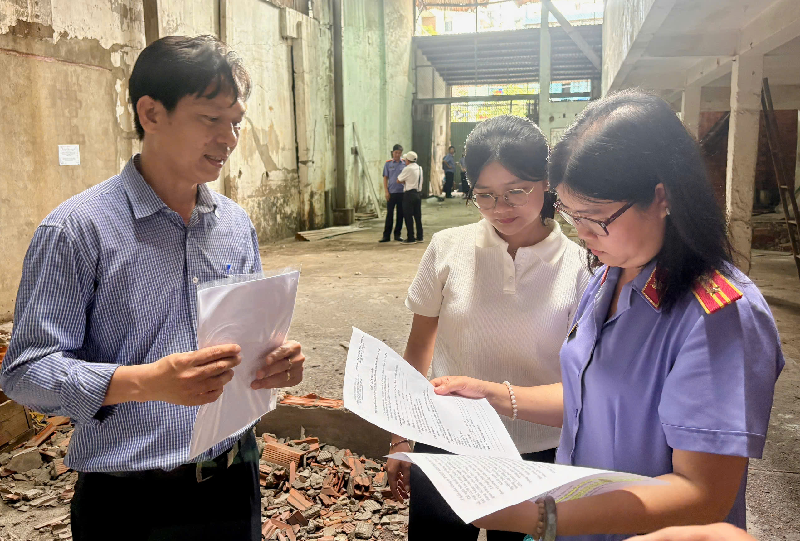 Ngày 10-4, VKSND khu vực 3 - TP.HCM đã kiểm tra buổi bàn giao lại mặt bằng hơn 525 m2 giữa ông NTV (đại diện bên sử dụng mặt bằng) và Công ty dịch vụ Công ích quận 11, TP.HCM.