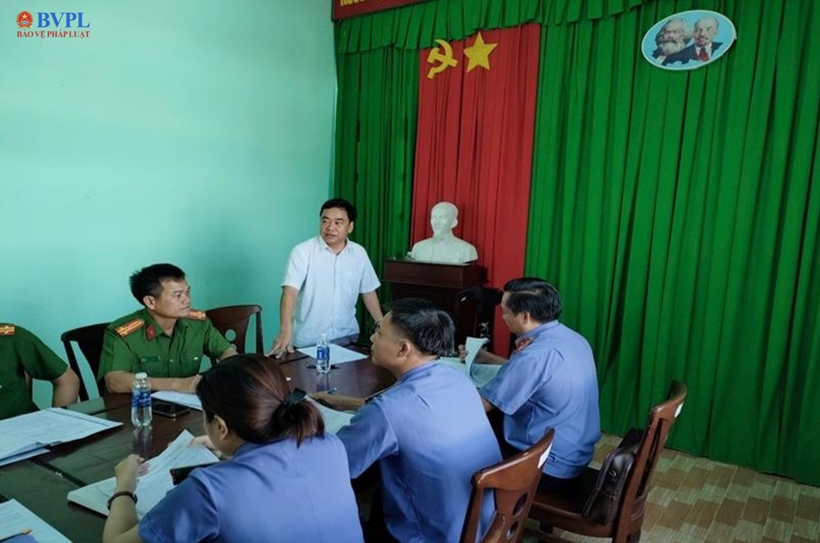 Đồng chí Hoàng Xuân Lưu - Phó Viện trưởng VKSND Khu vực 11 - Đồng Nai cùng thành viên Đoàn kiểm sát làm việc tại UBND phường Phước Long.
