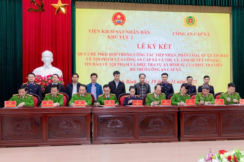 Chiều 19/11, VKSND khu vực 2, tỉnh Ninh Bình và Công an các phường: Tam Điệp, Trung Sơn, Yên Sơn, Yên Thắng và các xã: Yên Mô, Yên Từ, Yên Mạc và Đồng Thái tổ chức Lễ ký kết Quy chế phối hợp tạm thời trong công tác tiếp nhận, phân loại, xử lý tố giác, tin báo về tội phạm của Công an cấp xã; thụ lý, giải quyết tố giác, tin báo về tội phạm và điều tra các vụ án hình sự của Điều tra viên bố trí tại Công an cấp xã.