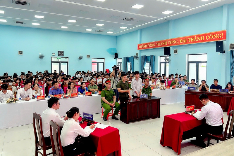 Với chủ đề tuyên truyền các quy định pháp luật liên quan đến người dưới 18 tuổi, phiên tòa giả định mô phỏng vụ án “Cố ý gây thương tích” (theo quy định tại Điều 134 BLHS 2015), gắn với các hành vi bạo lực học đường và gây rối trật tự công cộng. Thông qua đó, học sinh được tiếp cận trực quan, sinh động với quy trình xét xử và hậu quả pháp lý của hành vi vi phạm pháp luật.