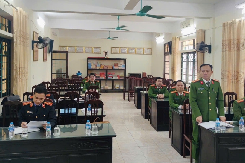 Chỉ huy Công an phường Mỹ Lộc, tỉnh Ninh Bình trình bày báo cáo đến Đoàn kiểm sát.